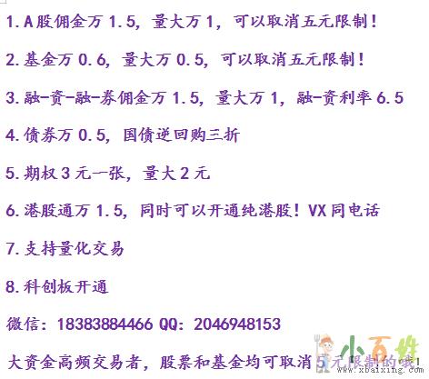 1.A股佣金万1.5,量大万1,可以取消五元限制!
